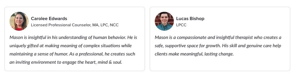 Hi, I’m Mason. I’m a professional therapist and trauma specialist working in Denver and Arvada, Colorado.